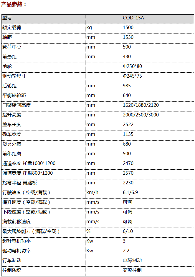 COD15系列1.5噸前移式堆高車(交流驅(qū)動)